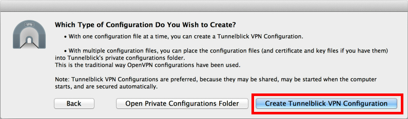 「Create Tunnelblick VPN Configuration」ボタンをクリックします。